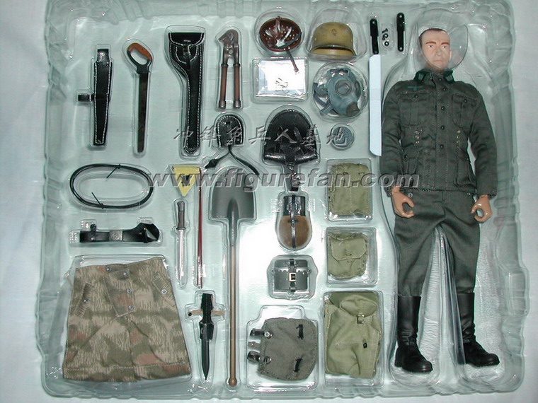 香港威龙2005年4月最新上市的最新一款二战德军兵人。这个也是威龙二战德军系列兵人中一个全新的题材--工兵,所以套件中出现了很多非常独特的配件和装备。